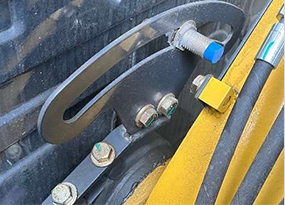 整機(jī)上道時(shí)鋼軌輪對(duì)位,且安裝便于更換的橡膠履帶板,防止對(duì)線路的道釘?shù)仍斐蓳p傷。